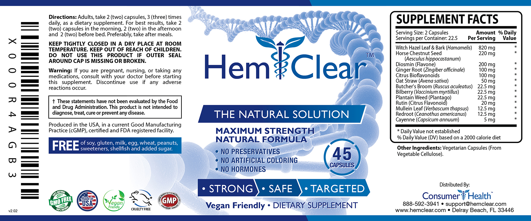 HemClear™ stands above other solutions by attacking the problem at its root. HemClear™ is a painless, risk-free alternative to prescription drugs and the many negative effects they're known for. It's a unique, maximum strength, proprietary blend of ingredients that is specially formulated to target persistent hemorrhoids.